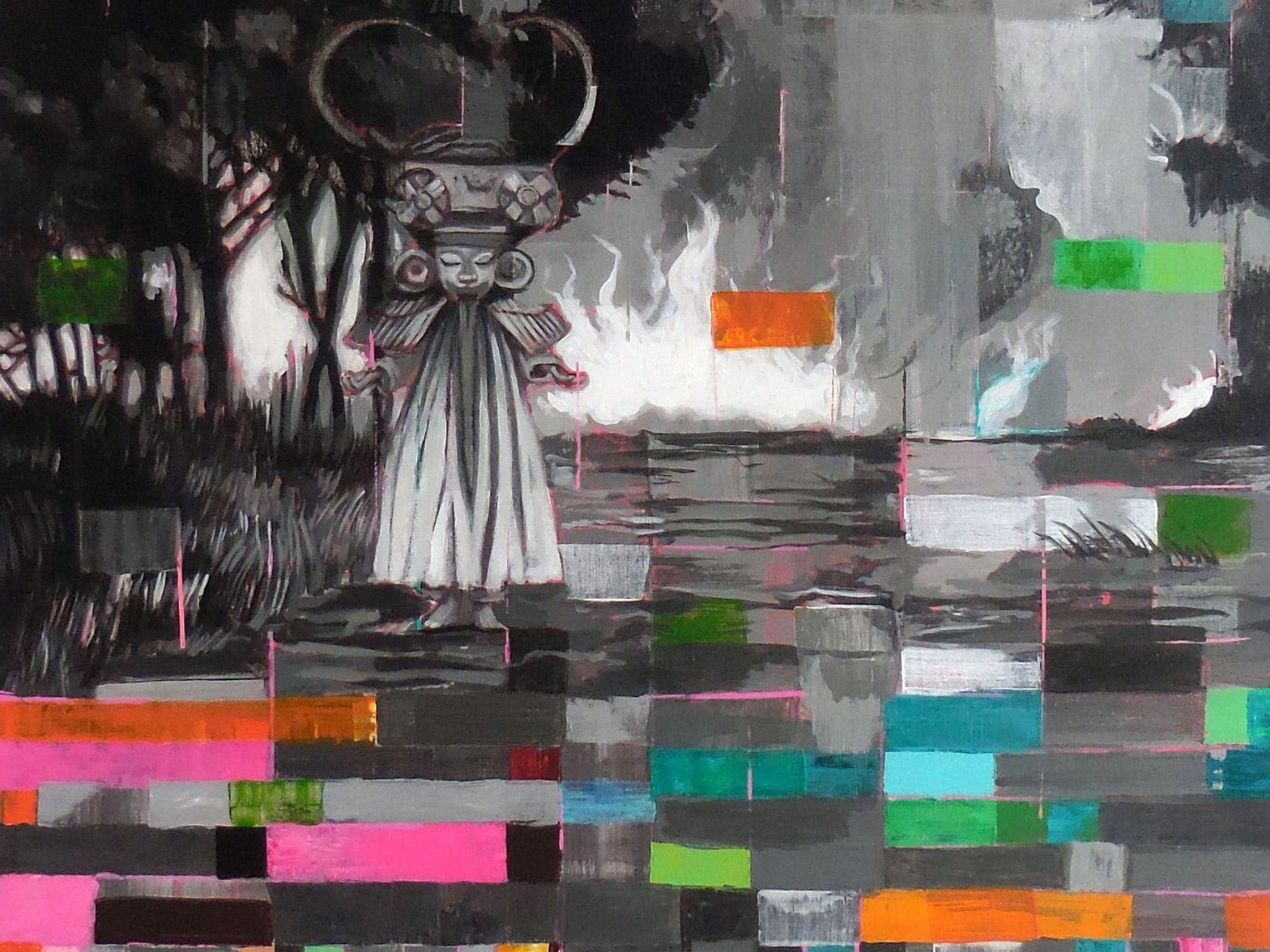 El fuego despoja y abre espacio, al igual que la naturaleza tiene una fuerza que nos rebasa en lo individual. Las deidades suponen atajos para restarle poder a un absoluto envolvente y como en el caso del fuego un supresor potencial del ser humano. Sofía Echeverrí al citar a la condición polifónica del bosque consumido quizás inspirada por el crujir de las existencias que muerden las llamas.