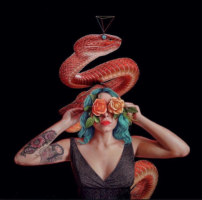 Si tratamos de ver en la Lilith pintada por Carlos Cortes a las diosas de distintas culturas qué unen las narraciones secretas que advertimos tienen una consecuencia con el tiempo inmediato. La serpiente encarnaría entonces nuestro miedo como especie a entender el dominio de la naturaleza y la batalla de la modernidad por apagar esa voz profunda.