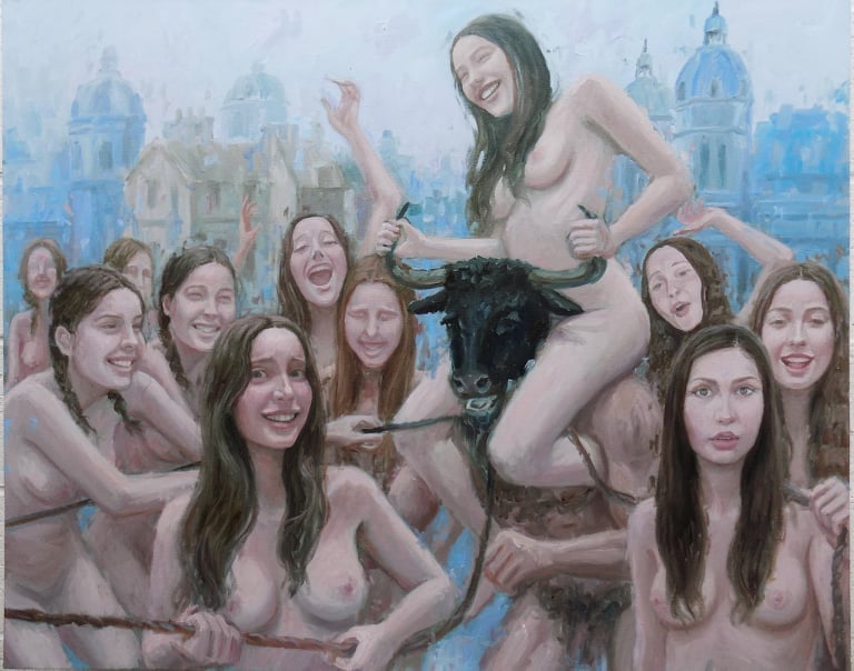 En la obra de Jessica Gadga la muerte equivale al vacío de la ausencia o de la duda que consume eso que entendemos por el alma. La conexión del Eros y Tanatos lo representa el toro en medio de las jóvenes que despliegan un teatro lúdico. En tales faenas las domadoras de galanes de Hirán Lomelí producen el aprendizaje de experiencias simuladas. La mentira es un juego de supremacías entre semejantes. Hirán Lomelí aporta el desconcierto de una alegría futura.