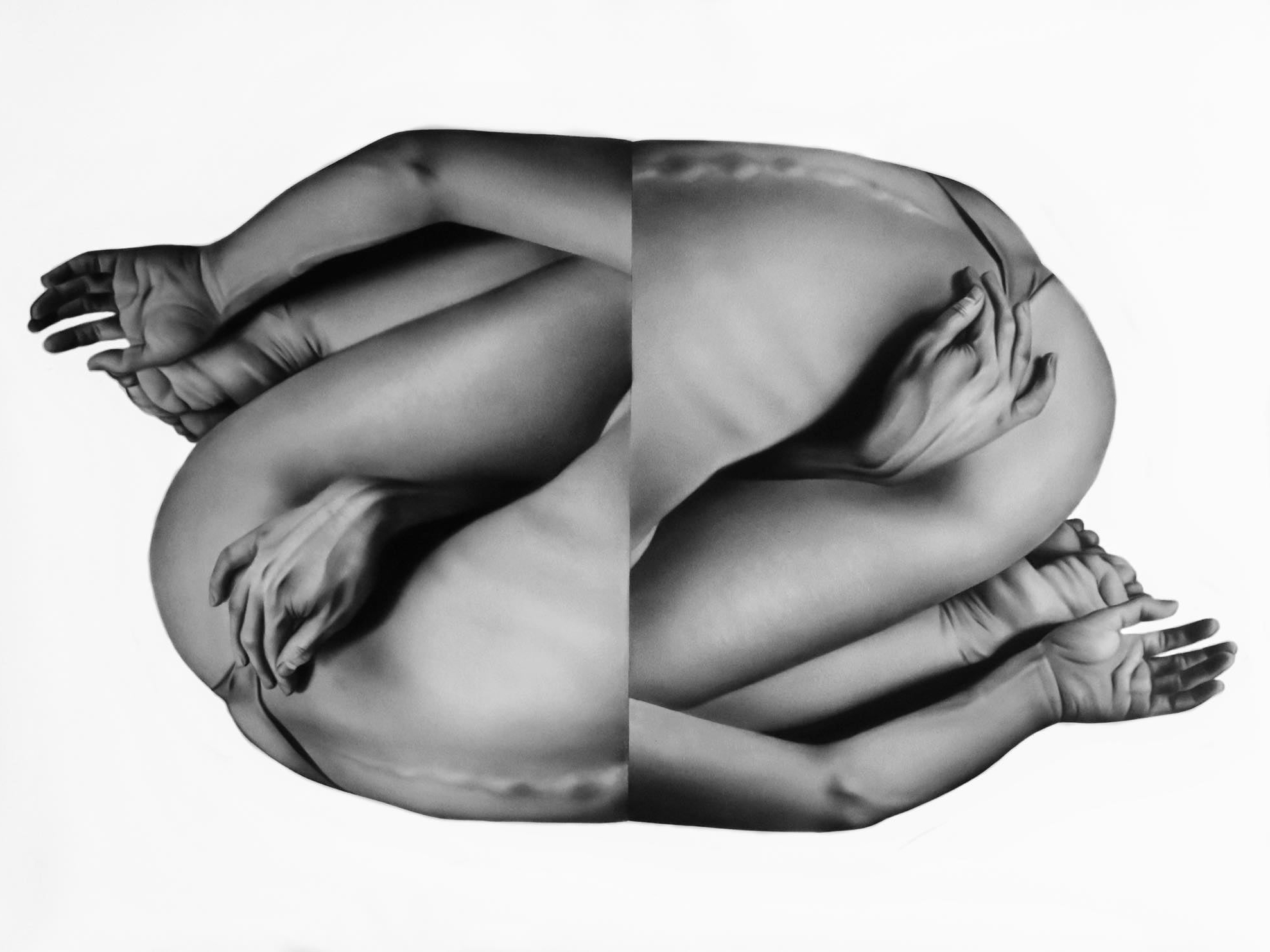 La semejanza entre los residuos de grafito y carbón sobre el papel en comparación a los poros de la piel, será una sensación explorada por los dibujantes anatomistas desde sus primeras investigaciones. El papel tiene una vida propia que en manos de los artistas revela otra serie de enigmas, Paulina Goca da voz a las transformaciones de la imagen residual en las fotografías y sus réplicas a modo de reflejos que ella reordena en función de un ordenamiento compositivo que toma en cuenta el flujo de la forma y la mirada.