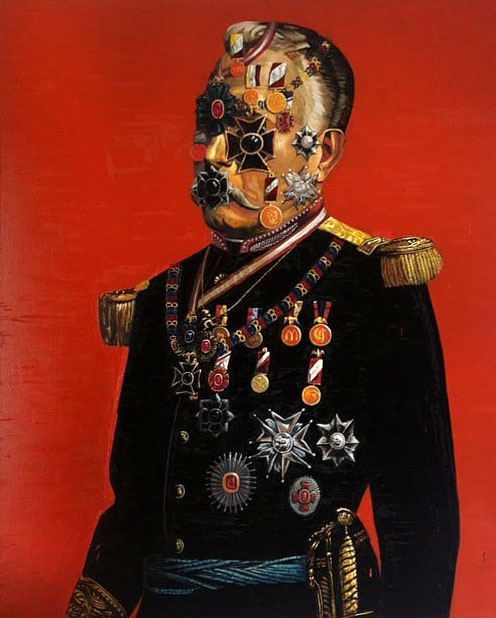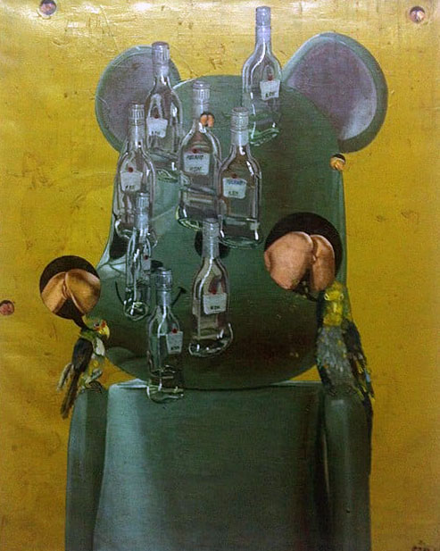 Decorar con publicidad entre garabatos callejeros los cuales entraran al deterioro natural, son las trampas que intentan engañar al ojo. El pintor si bien no los clasifica al citarlos da apuntes de los residuos mentales que con los que el entorno real bordea nuestro imaginario, la polución de tipografías que conforme pase el tiempo perderán sentido aplica a los rostros y el nombre en el que anclaron su identidad perecedera.