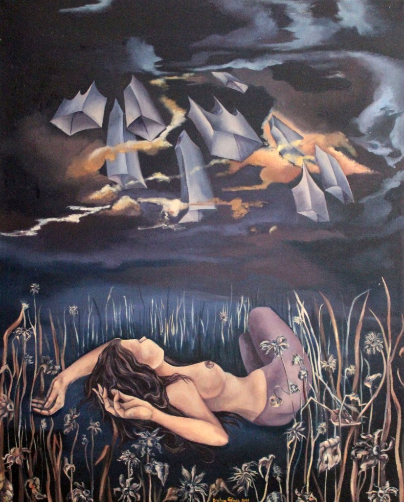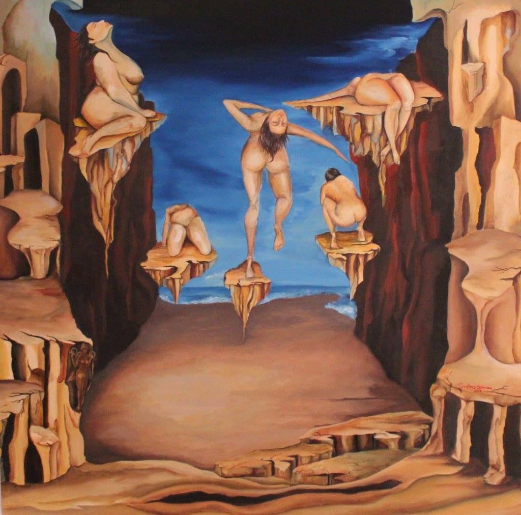 En las pinturas de Cristina Gómez los laberintos oníricos nos confrontan a una simbología que procede acaso de estímulos más que de redes racionales. Cristina Gómez trabaja con el barro en otra de sus facetas y cuando aborda el óleo está en una inmersión a través del color evocando a la materia primigenia.