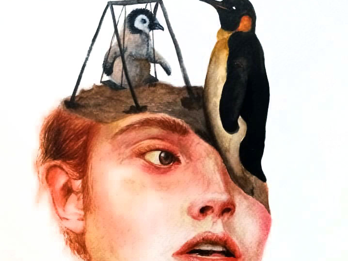 Las aves disociadas de un entorno natural somos nosotros según propone la artista. En una de sus obras Un pingüino separado de la postal imaginaria encuentra sobre una cabeza derretida los vestigios de un columpio. Un cráneo dentro de una jaula confirma la separación anatómica de la personalidad extraviada. Julia Avalos deletrea las situaciones idealizadas donde las distintas condiciones de lo humano descubren la reluciente fragilidad inherente a lo vivo, sin embargo Julia Avalos la muestra en su belleza simple e inmediata.