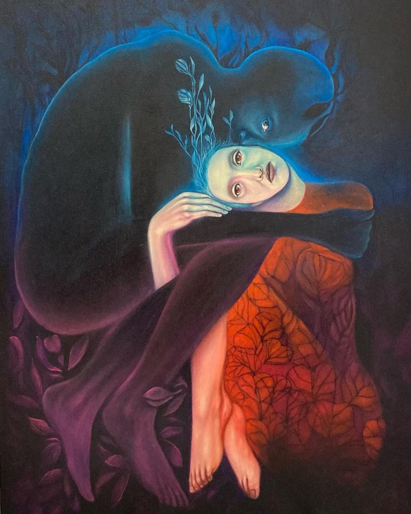 La noche viste de resplandores instantáneos a la consciencia, los seres que deambulan de un escenario al siguiente en las obras de Patricia García viven dentro de la ensoñación permanente. Los gestos corporales son los de infantes que descubren la seriedad del juego donde la existencia misma adquiere sentido. Este sistema simulado de ordenamiento simbólico impregna la estructura compositiva de las pinturas de Patricia García.
