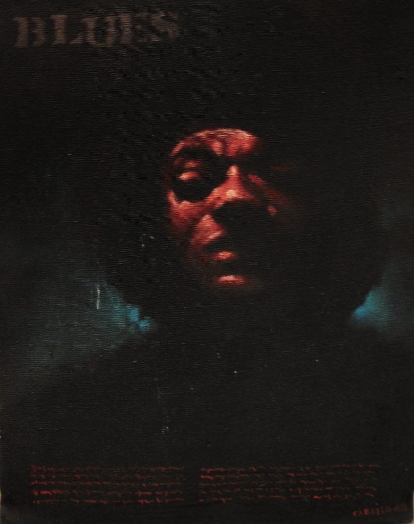 Los personajes de Javier Campos Cabello miran de frente al espectador, en medio de la evidencia de haber sido acorralados por el presente. El artista era consciente de que la carga histórica desfilaba por el filtro de un sinfín de interpretaciones, la efigie personal de los sujetos que construía configuraron su huella de autor, de modo adyacente su exigencia para que la autonomía de sus imágenes fueran sistemas cerrados, con una serie de correspondencias, compensaciones, antítesis, triangulaciones tautológicas, dependerán de una gradualidad y estrategia sistemática para a través de localizar estas tensiones entrar en el juego propuesto. Acaso de pintores como Rembrandt va a extirpar tal herramienta teórica, y es que, si bien Rembrandt comienza con narraciones bíblicas o retratos, gradualmente sus ilaciones narrativas resultaran cimentadas por un uso del claroscuro para distribuir ponderaciones, zonas neutrales o cualquier otro aspecto plástico, Rembrandt fue esquematizando al destacar puntos focales que estimulan visualmente en ocasiones prescindiendo de cualquier argumento. A Javier Campos Cabello este impulso de la pintura y de un valor puro, va a encontrarlo en Francis Bacon el misterio esencial del goce de mirar abriendo la mente a sensaciones no codificadas.