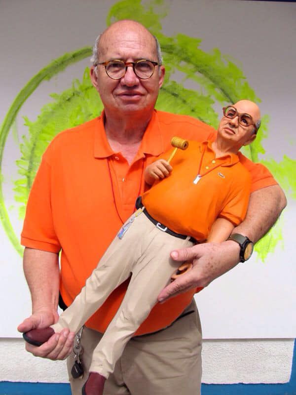 Las personas que representa en sus esculturas son sujetos que podemos encontrar en el entorno, y que sin embargo los destaca la singularidad de los aspectos individuales, a los que justo presta mayor atención. La certeza de su trazo sobre el volumen lo complementa al cromar las esculturas, con el pincel replica logos o los estampados de las prendas, no por un hiperrealismo predecible, su pulso contiene el compromiso de aclarar esa individualidad y no reducirse a las rutinas que pueda despersonalizar aquello que confronta en su análisis plástico. La calidez de la madera trasluce una presencia en un sentido integral, las gubias cincelan la tersa piel que definen la esencia corpórea, por ejemplo, en el retrato que dedico a el artista y martillero de subastas Paco de la Peña los lentes y el martillo logro recortarlos con delicadeza para que estos elementos significativos del personaje público lo volvieran inmediatamente reconocible, ha retratado a JIS o a amigos junto a su moto u cualquier otro reto que emerge de la madera. Las piezas sin pintar tienen ya ese halo que reanima vívidamente el realismo, por algo las esculturas de madera han sido contextualizadas en ámbitos devocionales, al aproximarnos a los seres cotidianos un espejo a escala imita la sensación perdurable con respecto a que consigan de modo repentino; respirar o sonreír.